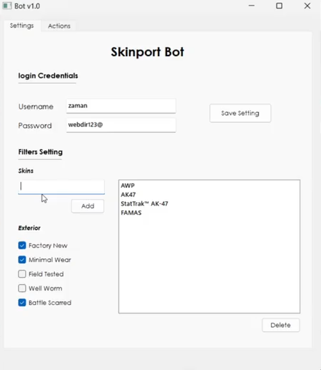 Pracuji na vývoji bota, který se specializuje na chytání skinů do hry Counter-Strike 2 (CS2). Tento projekt rozvíjím již dva měsíce a dosáhl jsem v něm zajímavých pokroků.